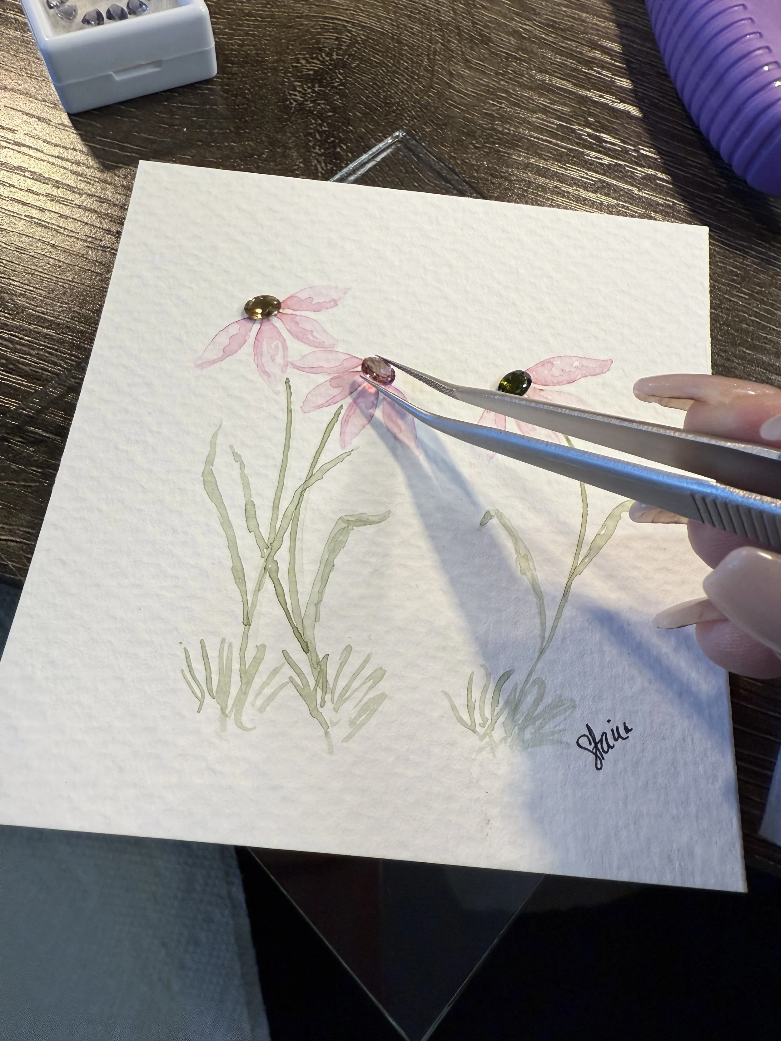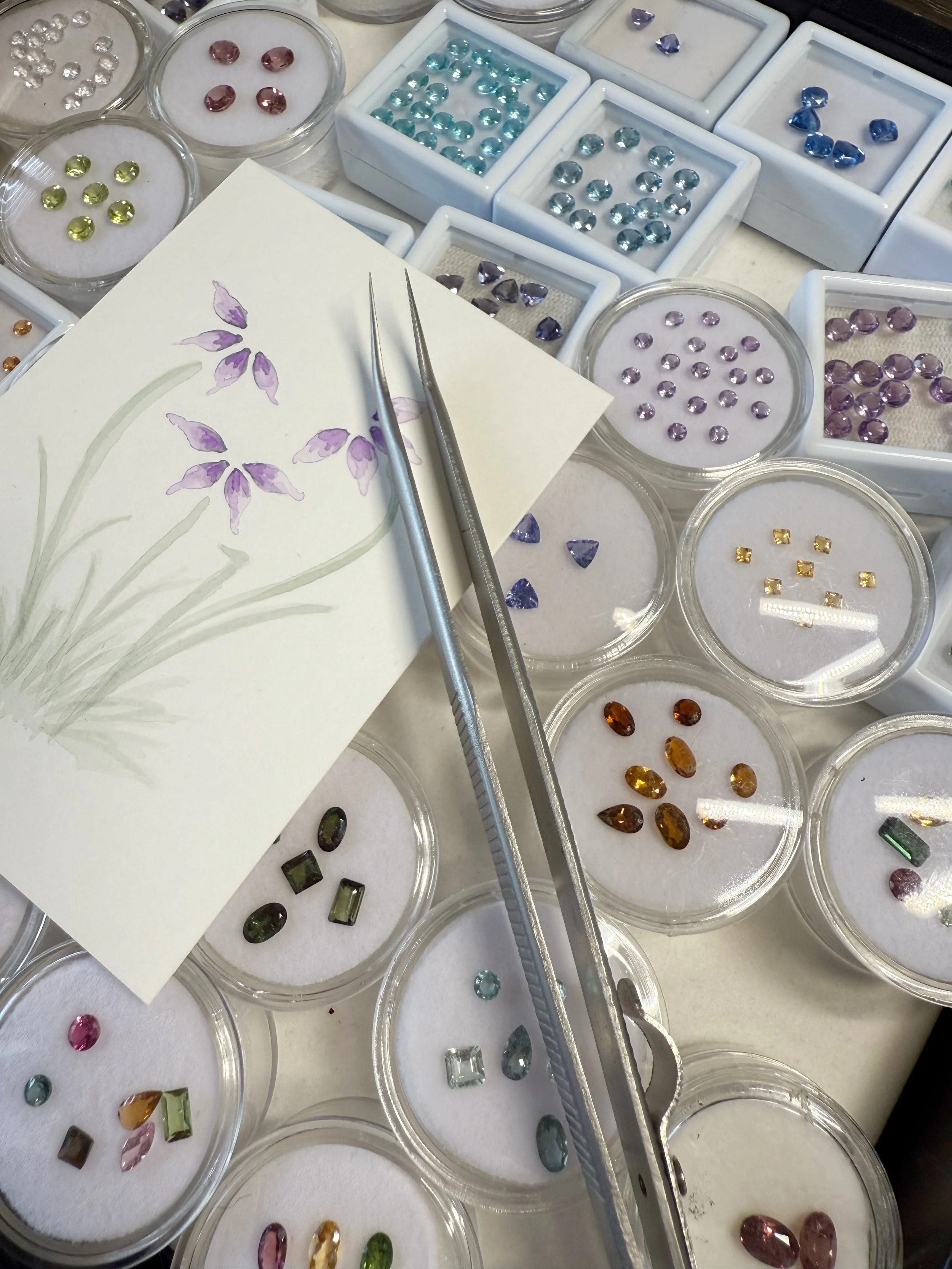 Gemstone art offers a unique way to enjoy the beauty of fine stones before they ever become jewelry. It’s a moment to pause and admire their color, their sparkle, and their individuality in a softer, more artistic setting.